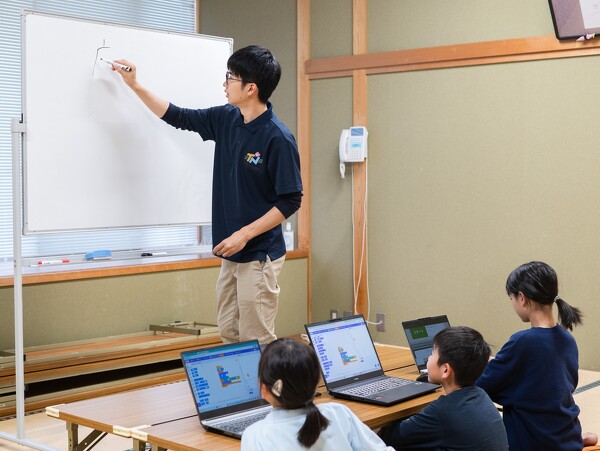 現在、市内・オンラインで4校のIT・プログラミング教室を開校している中川さんだがプログラミング講師になる以前、整体師・靴磨き・ウェブライター等の職業を経験してきたという。「教師になりたいという思いを持ちつつ、子どもたちにより多くのことを教えるためには私自身に社会での経験が必要だと思い、色々な経験をしてきました。たくさんの選択肢の中から様々な経験を重ねたうえで改めて“教育”の分野に進んでいくことを決めました」。色々な教室を見学し、講演会に赴き、自身で学習していく中でプログラミングは子どもたちの選択肢を広げるツールだということに気づきIT・プログラミング教室の開校を決意。たかなる教室という教室名には「胸が高鳴る。好きという気持ちや興味を広げてほしい」という思いを乗せている。
