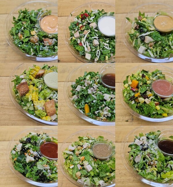 そしてもう一つのこのお店の売りは、新鮮な野菜、豆類、チーズなど様々な具材を刻んで作る、スプーンで食べられる栄養満点のサラダ!常時10種類以上の味が選べるため、気分に合わせて日々違うサラダを食べられます。美味しさ、栄養バランス、ボリューム、どれも大満足のサラダです。
