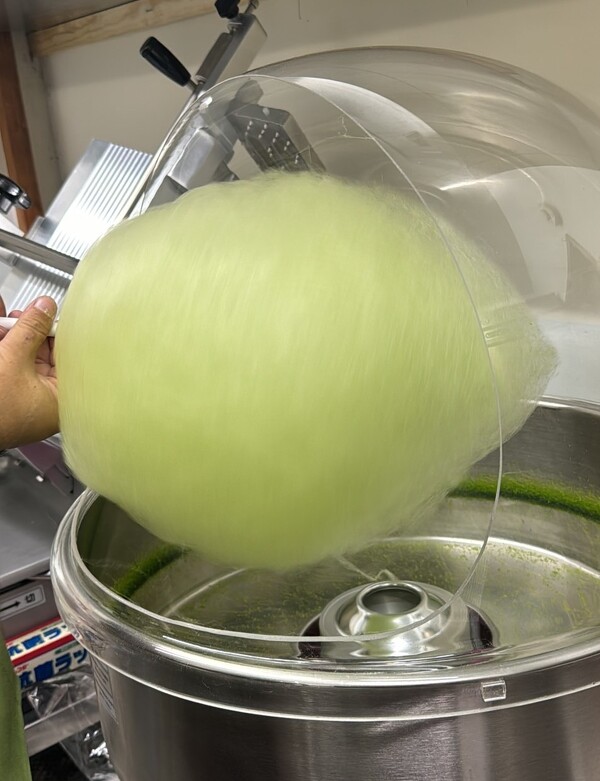 西尾茶屋のおすすめは、“西尾抹茶の綿あめ”と“ローズ綿あめ”です。抹茶の綿あめは、西尾市が誇る高品質な抹茶を使った贅沢な一品。一方、ローズ綿あめは西尾市の花である薔薇を使用しており、作る際に広がる優雅な香りが魅力です。鈴木さんはこれらの綿あめを「西尾の新しい名物として広めたい」と考えています。