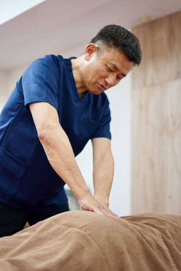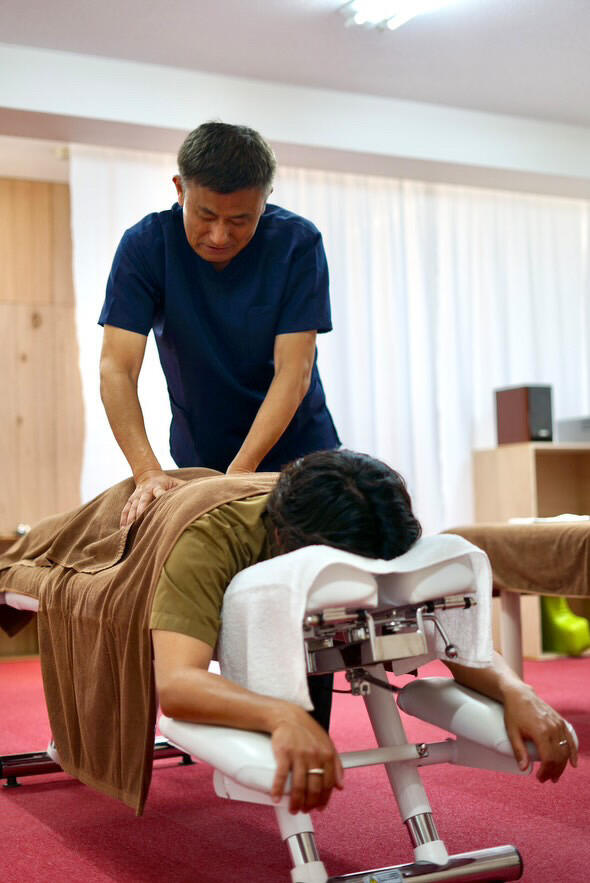 「お客様の体の状態は一人ひとり違うので、話を聞いて、触れてみて、その場で最適な施術を組み立てていくスタイルです」。最近では肩や首の不調に悩む人も多く、ストレートネックへの対応にも自信があるそうです。施術中には、姿勢やストレッチについてのアドバイスも行い、再発しにくい体づくりをサポートしています。