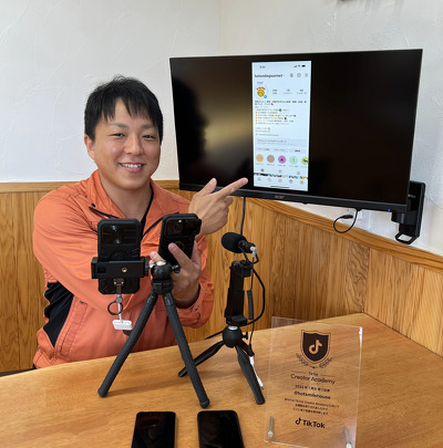 TikTok(建築職人まっさ)では3か月でフォロワー2万人達成。地元の飲食店を紹介するInstagram(西尾グルメ)でもフォロワー1万人を達成したインフルエンサー。