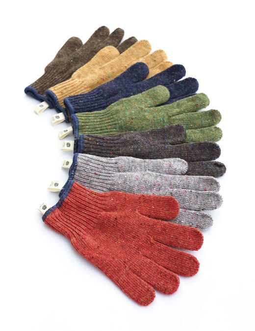 そんな折、西尾市内の紡績工場でかつて紡がれていたリサイクル原料を使用した“特紡糸”との出会いがありました。カラーネップが入った独特の風合いを見た瞬間、「これなら新しい価値を生み出せる。」と直感。過去のチャレンジの悔しさも糧に“三河軍手Ⓑ”プロジェクトが動きだしました。